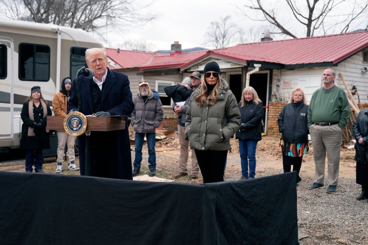 After a briefing on recovery efforts, Trump traveled to a small town outside Asheville to meet with residents who have been helped by Samaritan’s Purse, a humanitarian organization headed by evangelical leader Franklin Graham. The residents told him about wading through waist-deep water to escape from their homes while fearing for their lives. Some have battled with insurance companies to get their losses covered.